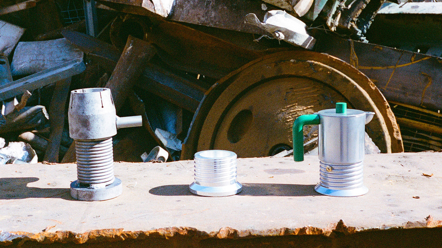 Dédiée à ceux qui apprécient un design audacieux et contemporain, la cafetière Vite, dessinée par Philippe Malouin, est réalisée en aluminium, un matériau qui confère au café espresso une saveur ronde et corsée. Petite sculpture industrielle, capable de dialoguer avec des intérieurs de styles différents, elle est conçue pour être utilisée sur tous les types de plaques de cuisson. Le projet Vite est né de manière totalement inédite dans l’histoire d’Alessi. C’est le designer lui-même, Malouin, qui utilise le terme « Scrapyard Works » : un processus de création qui prend littéralement naissance dans les dépôts de ferraille, où le designer récupère des fragments métalliques pour leur donner une nouvelle vie grâce à une intervention de recomposition et de réinterprétation.